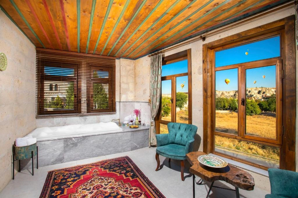 Premium Cappadocia House is a stylish Goreme stay close to Goreme National Park, Love Valley, and the Open Air Museum. Guests choose it for spacious rooms, complimentary breakfast, free parking, and a boutique Cappadocia atmosphere.